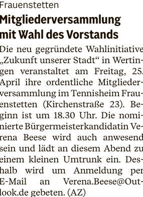 Wertinger Zeitung vom 25. April 2025